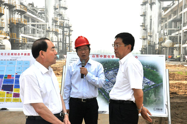 2012年11月1日下午山东省石油化学工业协会会长刘言、山东省石油化学工业协会规划发展部主任乔法兴等一行五人在济宁市、县有关领导的陪同下到山东中联化学有限公司进行调研。公司董事长常广水,总经理屈莉铭, 济宁市生物化学工业办公室主任王爱忠、济宁市生物化学工业办公室规划发展科科长王芬盛、汶上县委副书记、……
